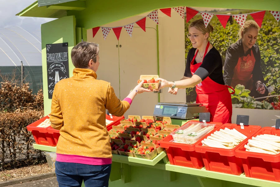 Rund einen Monat später steigt das Hoffest, das nur alle zwei Jahre stattfindet. Selbstverständlich mit Aktivitäten für die ganze Familie wie eine Strohburg, Hofbesichtigungen und vielem mehr. Neben Spargelgerichten gibt es hier bereits die ersten Erdbeerleckereien.