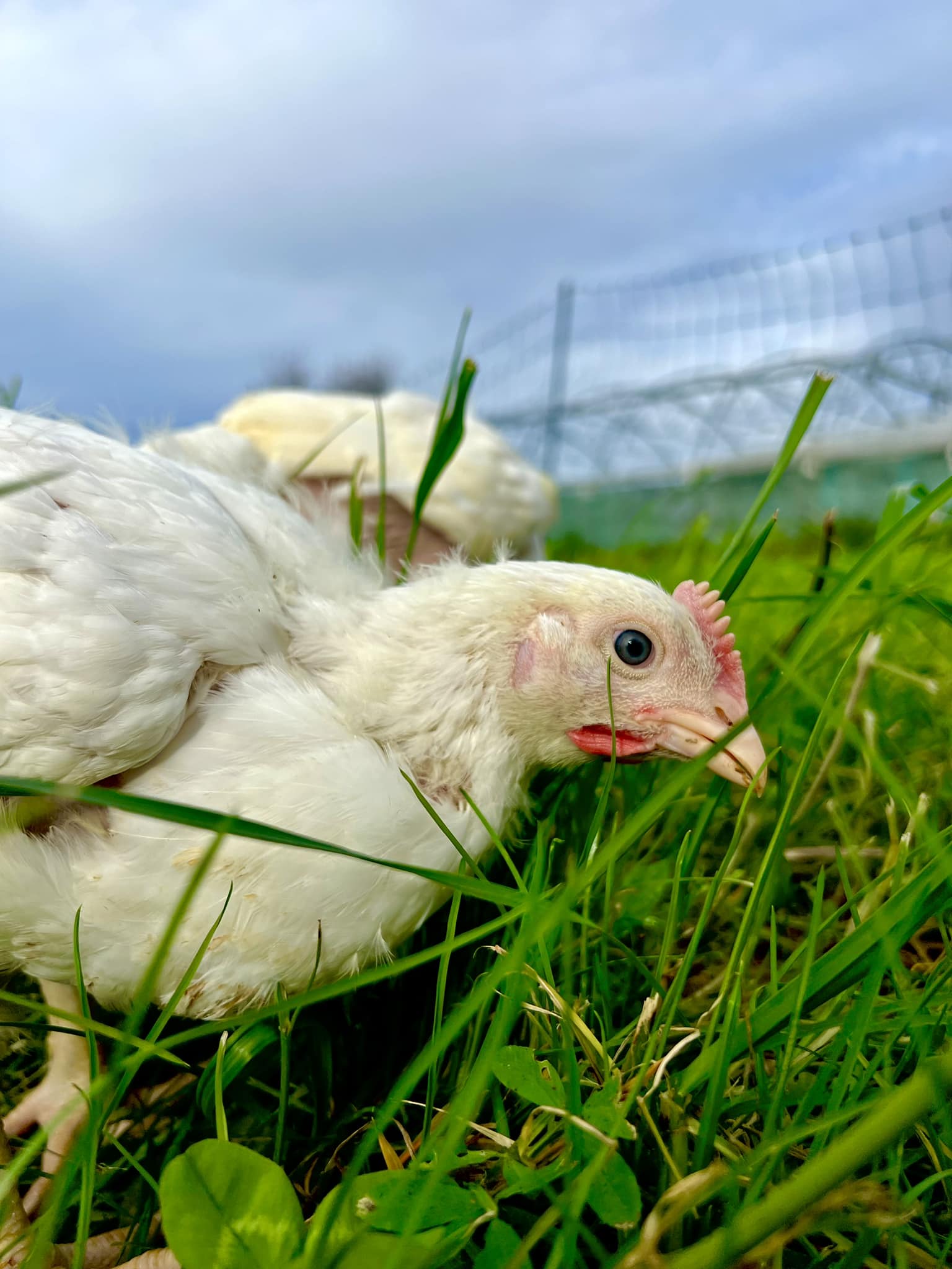 Im November 2023 startete die Hähnchen-Freiland-Mast mit 80 Jungtieren aus bester Aufzucht – halb so viele, wie auf der zur Verfügung stehenden Fläche gehalten werden dürften. Mehr sollen es jedoch nicht werden, damit die Hähnchen ausreichend Platz haben, sich frei zu bewegen. Denn viel Bewegung, frische Luft und eine vergleichsweise geringe Besatzdichte fördern die Fleischqualität – und das schmeckt man.